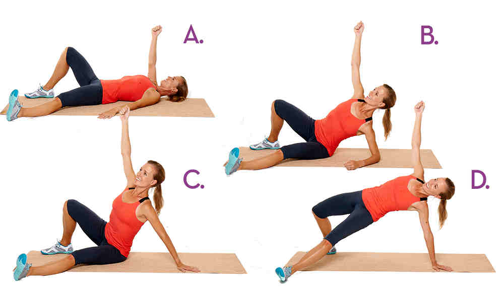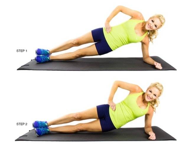 - 1.Лечь на бок, опереться на локоть, спина прямая. Поднимать верхнюю ногу ближе к корпусу, потом плавно опускать. Через пятнадцать повторений менять сторону.