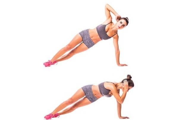 Планка – это уникальное упражнение, которое выравнивает позвоночник, подтягивает живот и ягодицы, прорабатывает мышцы рук и ног. Оно понравится тем, кто хочет знать, как убрать бока на поясницы. Исходное положение: на коленках с упором на ладони, локти поднять до уровня плеч. Поочередно выпрямите ноги, смотря вниз. Держим такое положение с упором на носки ног и ладони две минуты. Помните, что ноги, таз, позвоночник и шея должны составлять одну прямую линию.