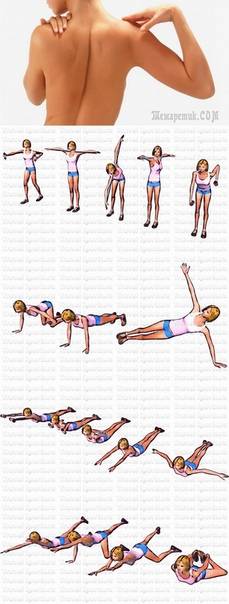 Сведя лопатки вместе, оторвите руки от пола примерно на 15 см, удерживайте их в таком положении в течение 10 секунд, а затем медленно опустите.