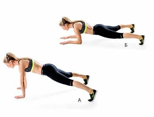 Жир с лопаток, рук и спины может пропасть благодаря отжиманию от пола. Для этого примите положение параллельно полу. Вес перенесите на руки. Опуститесь до упора, задержитесь на несколько секунд и вернитесь в начальную позицию. Сделайте 12 – 20 отжиманий.