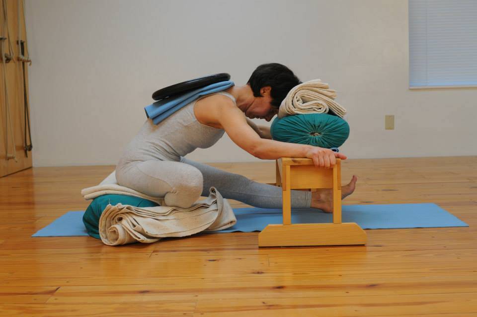 - В сидячем положении выполняется и поза посоха. Спина должна быть ровной, а корпус тянется вверх. Пальцы ног потяните к себе.