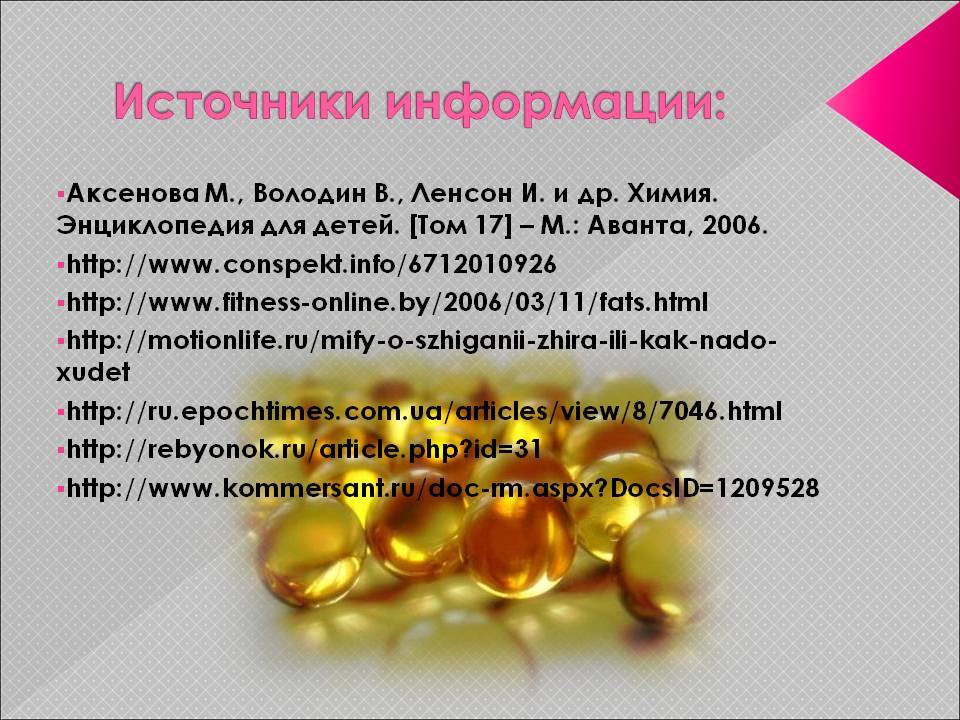 2. Жиры// Большая российская энциклопедия. Том 10. – М., БРЭ, 2008.