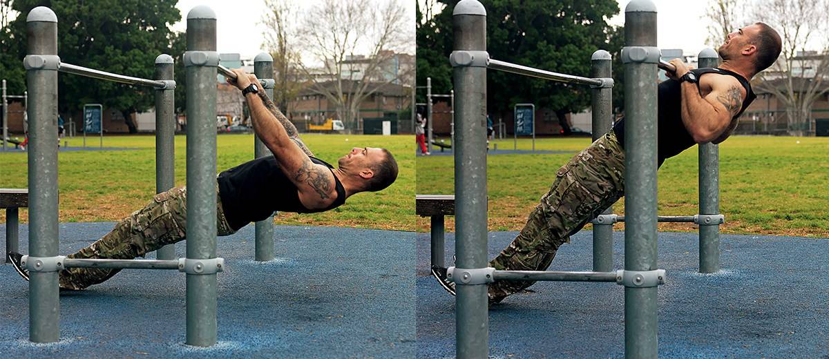 Если вы пока что не умеете подтягиваться, вот простой способ развить необходимую силу. Австралийские подтягивания.