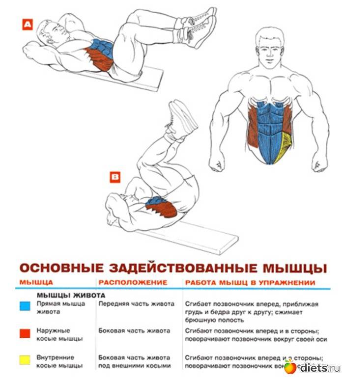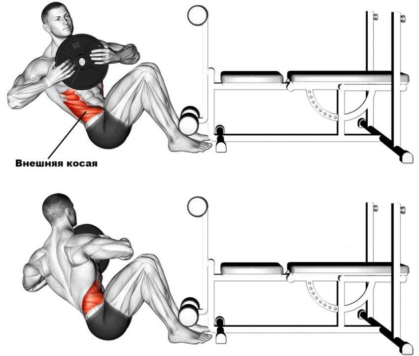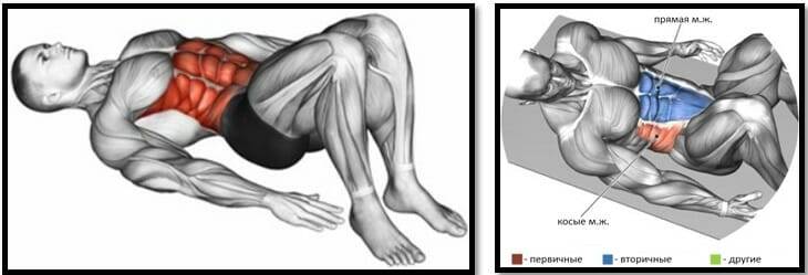 | Скручивания наискосок | Косые мышцы живота |