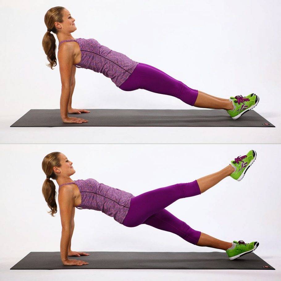 - балансирующая планка + поочередный подъем ног;