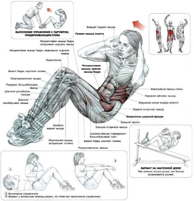 - базовые упражнения на пресс — названия с картинками