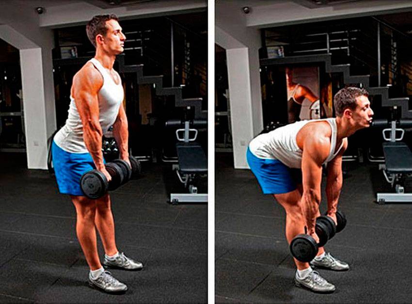 - Тяга с гантелями развивает хват