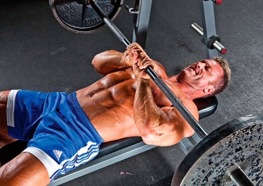 Включение трицепса в упражнении зависит от положения локтей в большей степени. Если атлет разводит их в стороны, и пытается как бы растянуть гриф, включаются грудные. Нужно вести предплечья вдоль боков, чтобы не включать лишние мышцы.