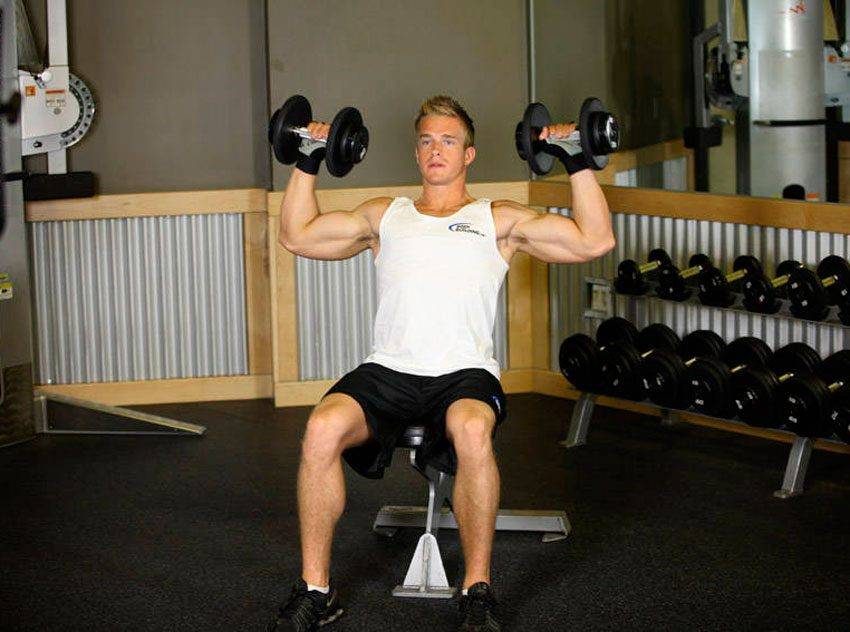 Обычно атлеты склонны задерживать его, когда тяжело. Это не правильно и может даже привести к потере сознания при подъеме гантелей над головой. Жим гантелей сидя подчиняется обычному правилу – выдох происходит на усилие, вдох – на опускании снарядов.