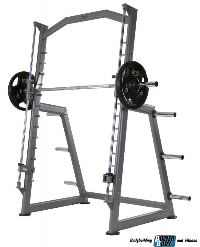 Тренажер Смита представляет из себя силовую раму, с направляющими, по которым может свободно может перемещаться гриф штанги, движение которого возможно строго в в вертикальной плоскости.