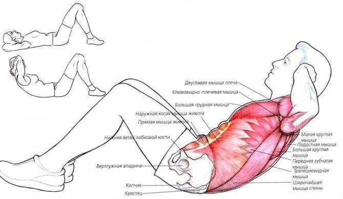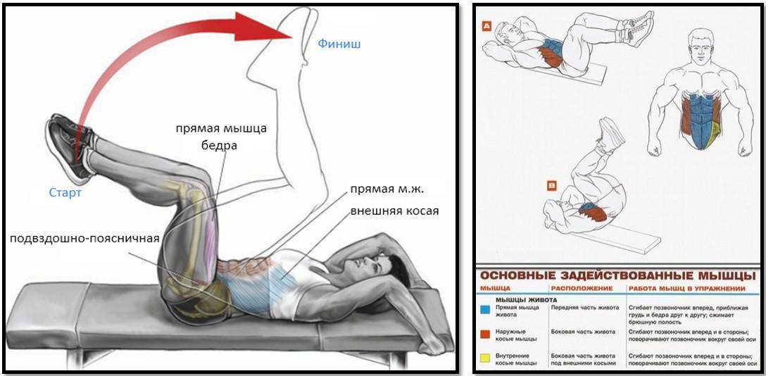| Скручивания наискосок | Косые мышцы живота |