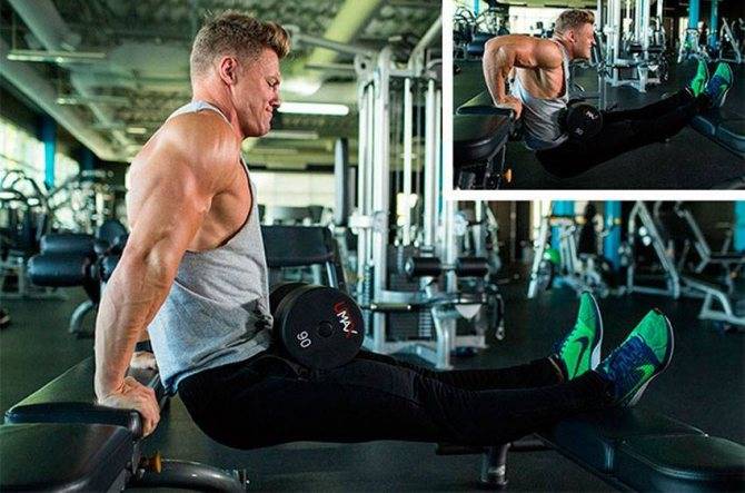 Опытные атлеты могут выполнять это упражнение не только с простой опорой на две лавки, но и с отягощением. Принципиальной разницы нет – одни предпочитают класть на бедра блины от штанги, другие – мешки с песком