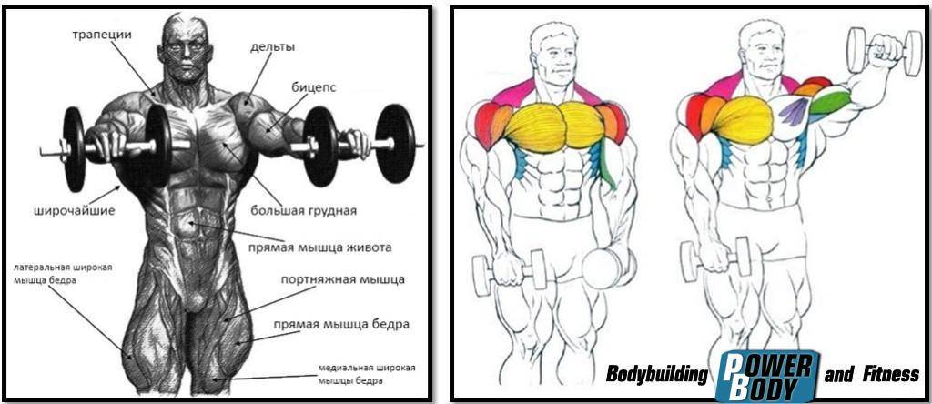 Большое значение имеют и анатомические особенности. При избыточном развитии трапеции, атлет не сможет выполнять движение только за счет плеч. Это надо учитывать при выборе весов отягощений и начинать буквально с 2-3 кг.