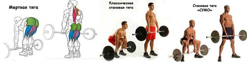 - Мертвую тягу, то есть тягу на прямых ногах;