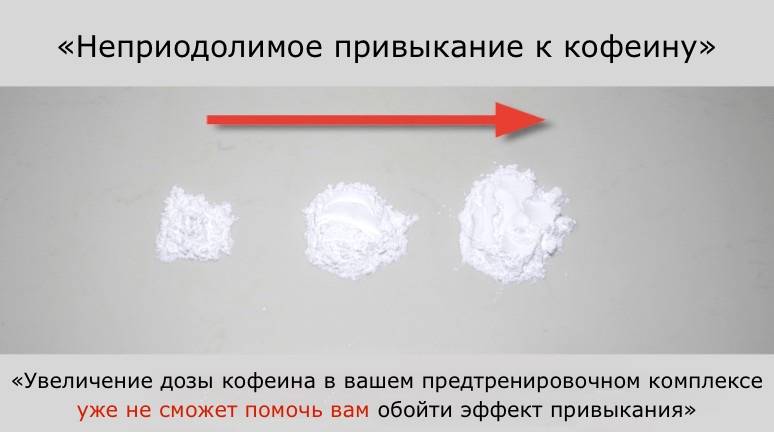 Что увеличение дозы предтренировочного комплекса не будет увеличивать эффект и не сможет обойти привыкание.