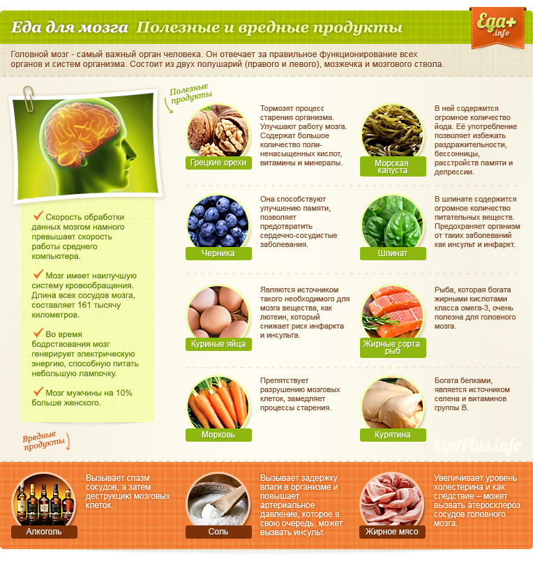 Помните, что употребление только одного из перечисленных продуктов не гарантирует полноценной мозговой деятельности
