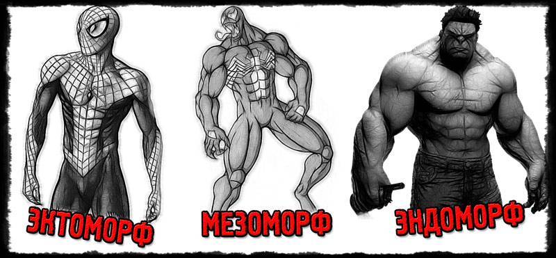 Обидеть никого не хотел (я про надписи в скобках). Говорю так просто для наглядности. Обо всех трёх типах телосложения я рассказал в статье о эктоморфах. Посмотрите, при желании. Сейчас же, расскажу конкретно про ЭНДОморфов.