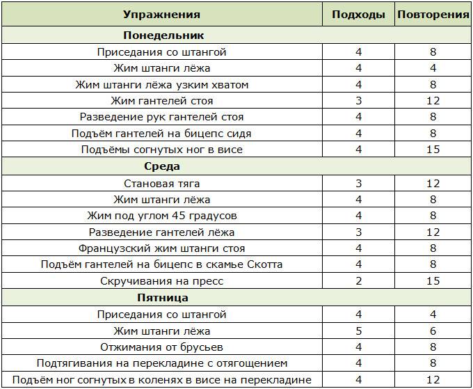 Просто помните, если вы новичок, то лучше начинать с основных, сложных движений, и выполнять меньше подходов. Тогда со временем вы можете делать свою тренировку более объемной.