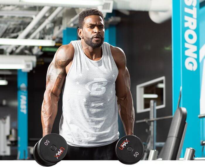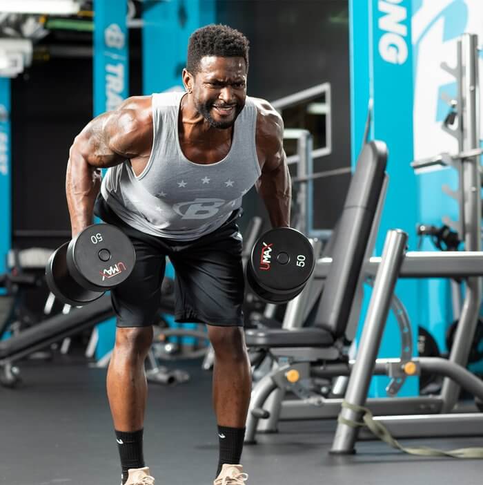 - Слегка согните свои локти и поднимите гантели на уровень плеч, сводя и опуская свои лопатки.