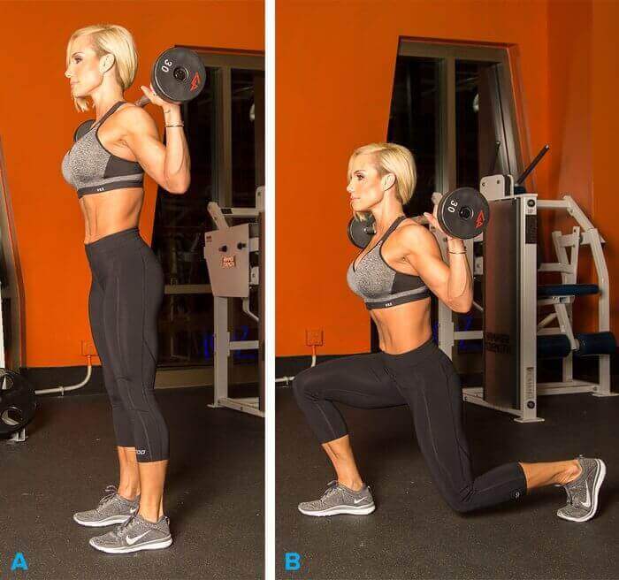 Экстремально широкий шаг вперед атакует ягодицы, а вот короткий шаг с углом 90 градусов в передней ноге в большей степени рекрутирует квадрицепсы. Хотите почувствовать жжение? Делайте три пульсирующих толчка в нижней части движения, чтобы прожигать мышцы в каждом повторении.