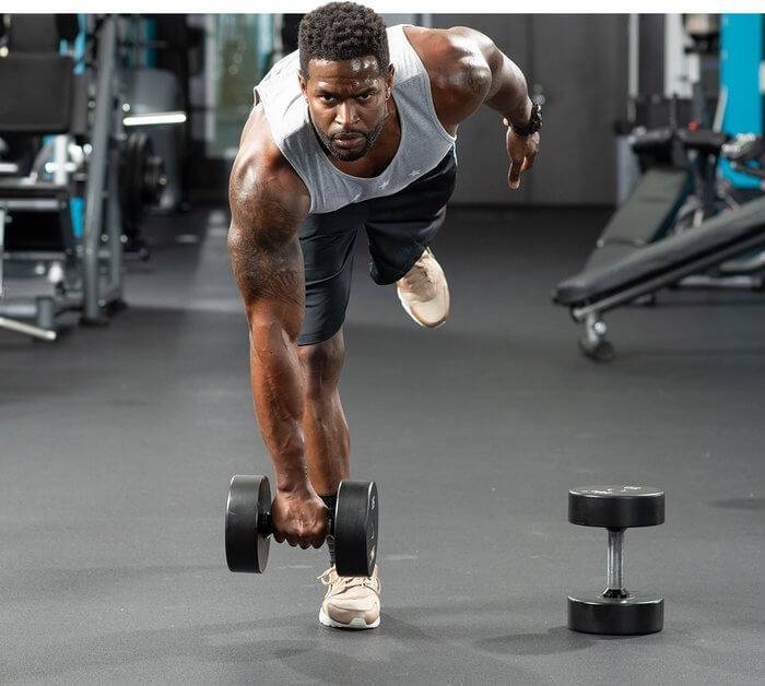 - Опустите гантели, возвращаясь в стартовую позицию.