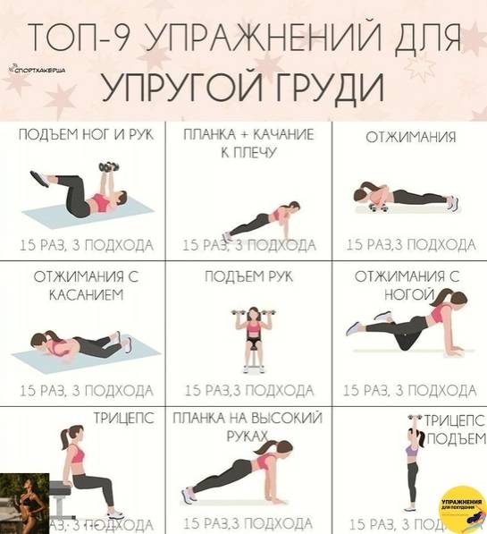 Отжимания. Упражнение, которое обязательно входит в каждую тренировочную программу. Помогает проработать мышцы спины, избавиться от жира в области подмышек, подкачать и приподнять мышцы грудной клетки. Упражнение выполняется следующим образом: