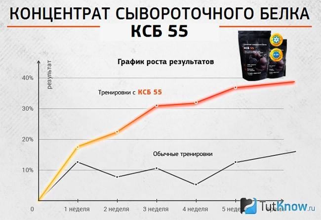 В интернете вы можете найти график, характеризующий рост результатов с употреблением КСБ и без него. Предлагаем ознакомиться с ним ниже: