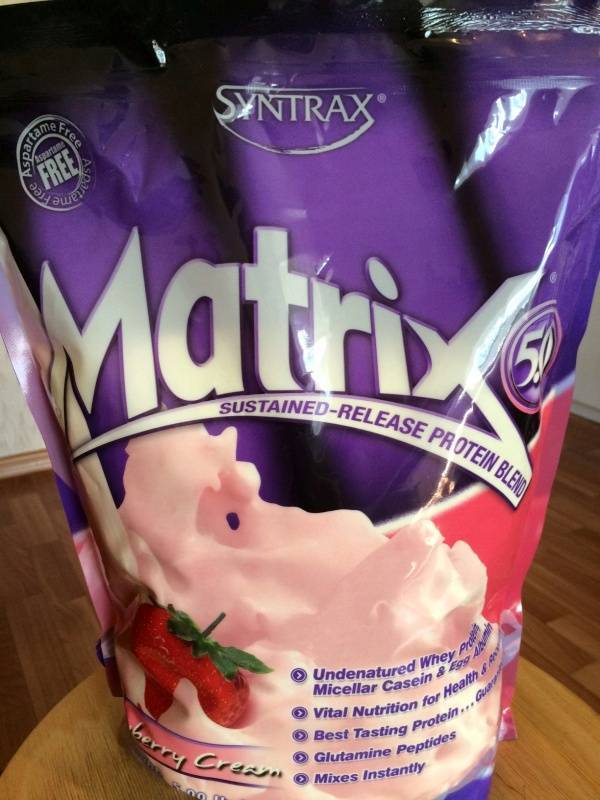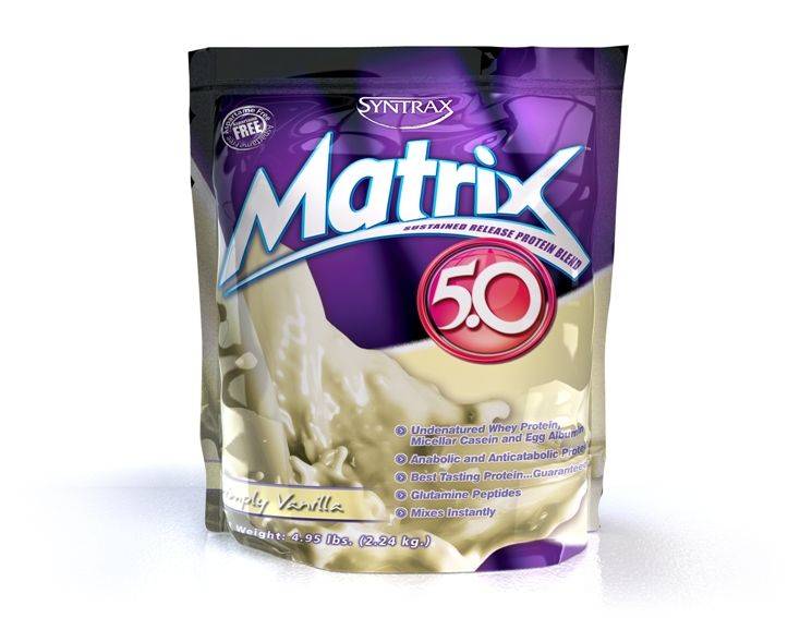 Производители Syntrax Matrix 5.0 утверждают, что решили две больших проблемы протеиновых смесей: сложность приготовления (приходится долго разбивать комочки блендером) и неприятный вкус. Этот продукт прекрасно расходится в жидкости – достаточно энергично встряхнуть или размешать ложкой. У него есть несколько фруктово-ягодных вариантов, а также, «шоколад», «мятное печенье», «шоколадно-арахисовая паста».