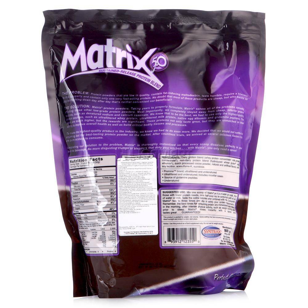 Syntrax Matrix, благодаря содержанию в нем как быстрых, так и медленных белков, можно применять на протяжении всего дня. Большинство спортсменов принимают быстрые белки после силовых тренировок (протеин молочной сыворотки), а вечером медленные белки (казеин). Потому как в состав данного продукта входят казеин (медленный белковый источник), яйцо (средний белковый источник) и сыворотка (быстрый белковый источник), продукт быстро снабжает мышечные волокна аминокислотами, также как и осуществляет поставку этих же питательных веществ в течение продолжительного временного интервала.
