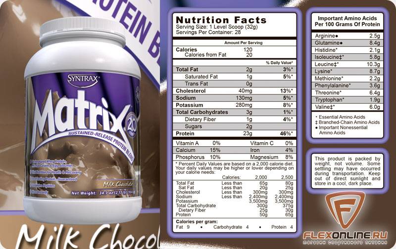 По сути, комплекс Matrix 2.0 является улучшенным вариантом традиционного сывороточного концентрата. Он включает молочный сахар, но в меньшем количестве, чем обычно. А по причине отсутствия сильной термической обработки усвоение протеинов происходит более продолжительное время, то есть аминокислоты поступают в кровь дольше, чем в случае классического концентрата. С учетом всех преимуществ стоимость продукта остается доступной.