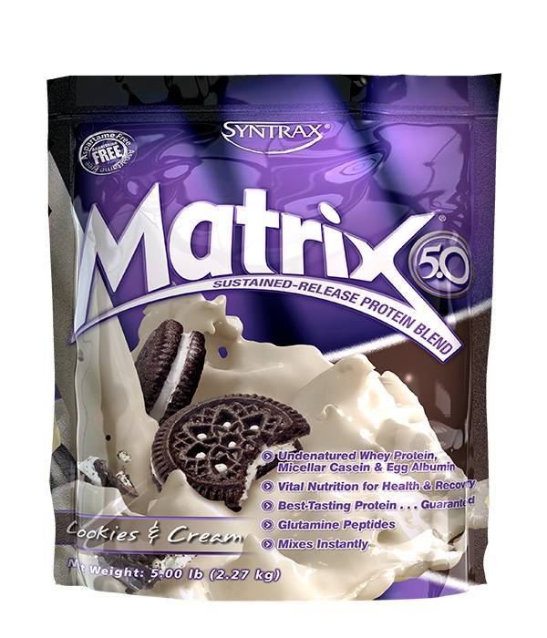 Немаловажно, что Синтракс так же позаботилась и о вкусовых свойствах своего продукта. После долгих испытаний в лабораториях, протеин Matrix 5.0 приобрел превосходный шоколадный, ванильный, клубничный, банановый, печенье с кремом, мятное печенье , апельсин вкусы, которым редко обладают протеиновые смеси