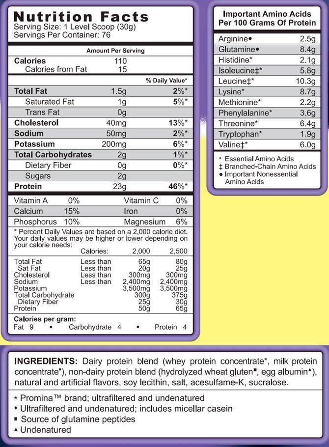 Ее преимущество – идеальный состав и отсутствие даже намека на белки низкого качества. Здесь уже не используются казеинат кальция и денатурированный натрий, как отжившие свой век, опасные и неэффективные белки. На их смену пришли только лучшие компоненты – молочный протеин, сывороточный порошок (изготовленный методом ультрафильтрации), яичный альбумин (исключительно натуральный), а также глютаминовые пептиды.