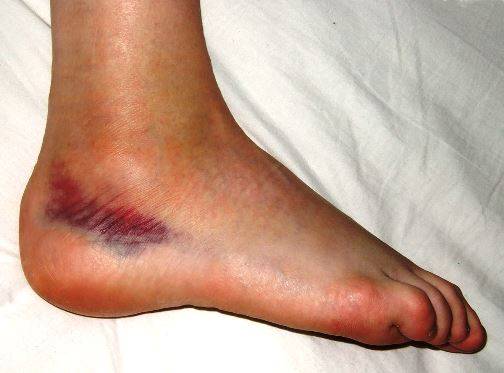 3. Боль жгучая и нестерпимая, под кожей скопилась кровь, появилась гематома (синюшность покровов кожи), самостоятельное движение ногой невозможно при поперечном и полном разрыве связок. Отмечаются патологичные признаки при движении стопы.