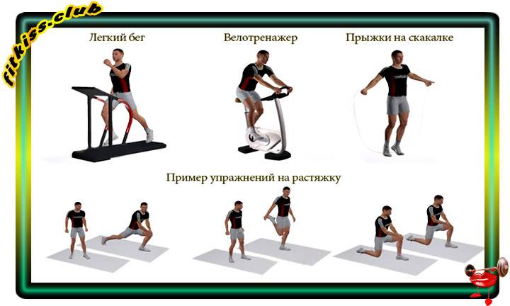 1. Подготовка мышечной и скелетной системы к нагрузкам, а также всех органов, которые будут задействованы при занятии.
