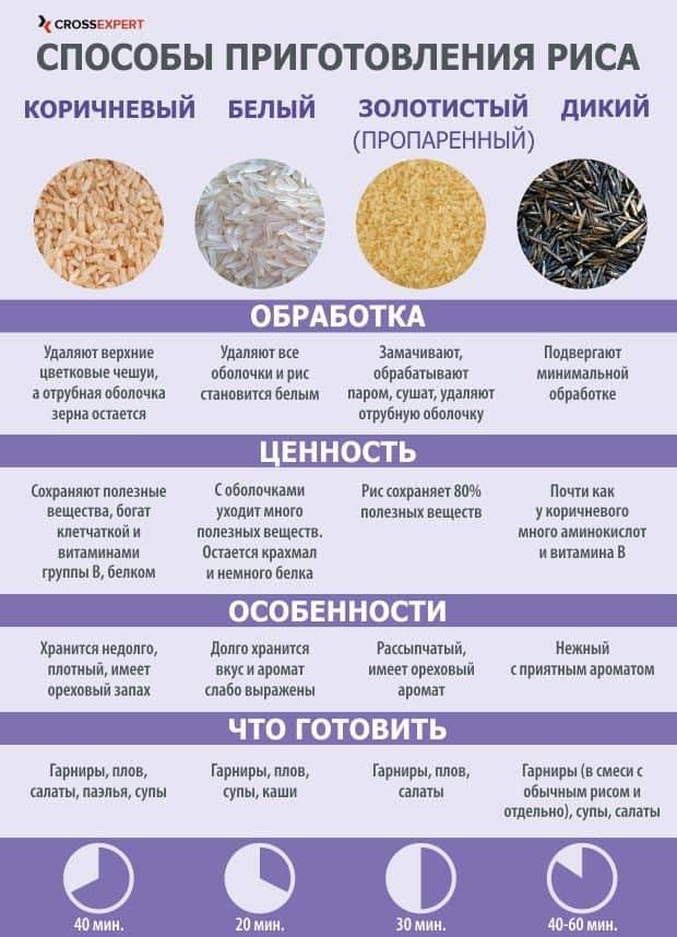 Чтобы правильно ответить на вопрос, сколько калорий в вареном рисе, необходимо различать его виды. Как уже упоминалось выше, рис различают по форме и по способу его обработки.