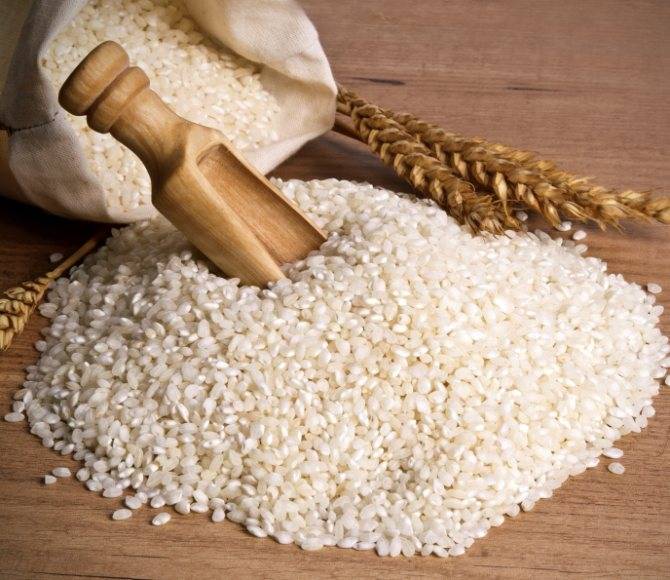 - Круглозернистый. Широко распространён на территории России и стран бывшего СССР. Во время варки образуется густую массу, напоминающую крем. Отлично подходит для пудингов и пирогов.