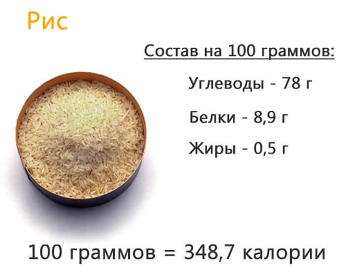 Дело в том, что во время приготовления каши рис увеличивается почти в 3 раза. И если отварить 100 грамм сухого риса, то получим 300 грамм готового продукта. Вода не несет в себе калорий, поэтому по сравнению с сухими злаками, отварные не меняют калорий.