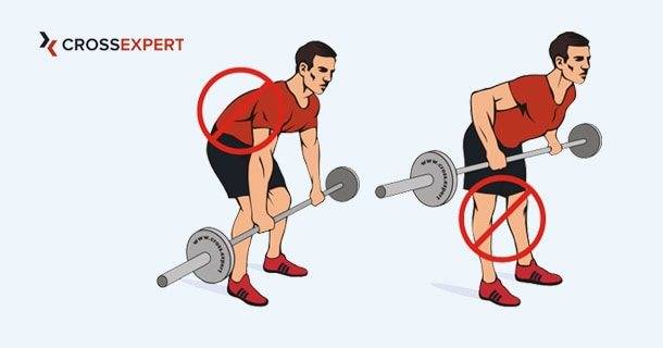 - Ошибка первая. Штангу (гантели) нельзя отводить вперед, необходимо грифом скользить по ногам. Если будете выполнять неправильно, дадите нагрузку на поясницу.