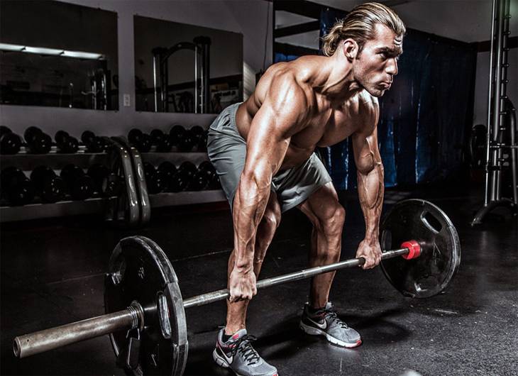 - Чтобы чередовать нагрузку на разные части мышц спины, меняйте угол наклона туловища и ширину хвата грифа штанги.