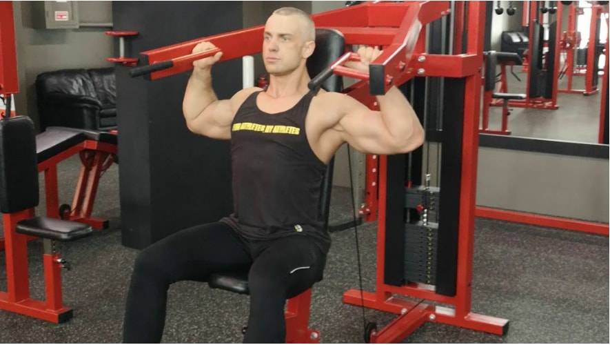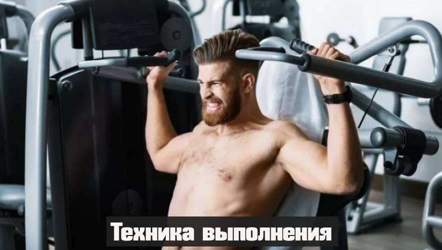 Помимо этого есть тренажер в котором можно выполнять данный жим стоя. Но встретить его можно крайне редко, поэтому классическим считается вариант сидя. На его примере мы и будем разбирать технику выполнения.