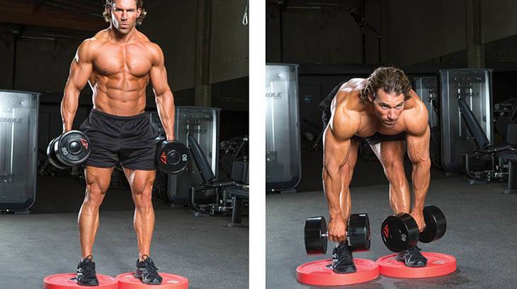 Тяга с гантелями хорошо подойдет начинающим, так как при ее выполнении идет не такая сильная нагрузка на мышцы, как при выполнении становой со штангой. Классический вариант выполнения становой тяги с гантелями следующий: