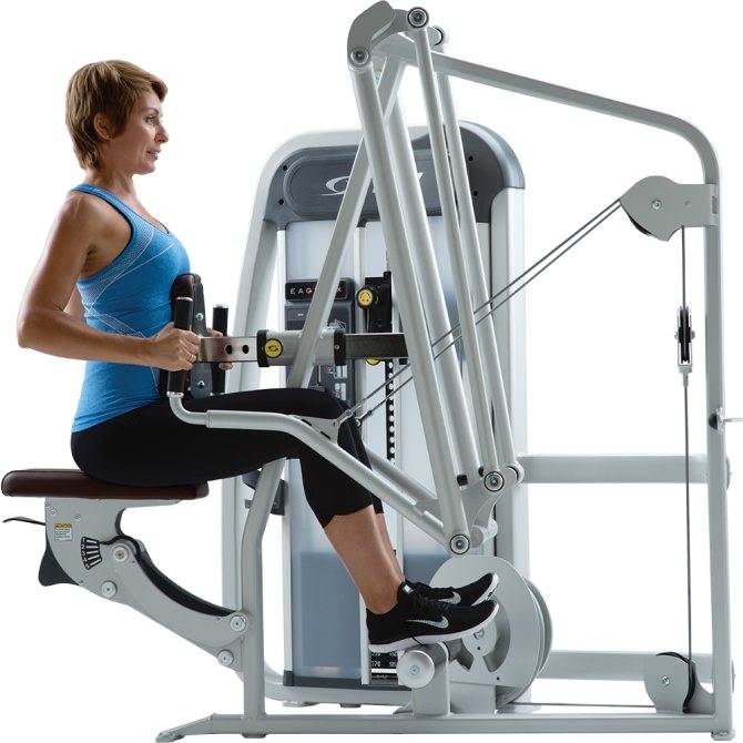 - Прежде всего нужно отрегулировать высоту сидения в тренажере под свой пост. Ориентироваться мы будем по высоте рукояток. Они должны быть на уровне ключиц.