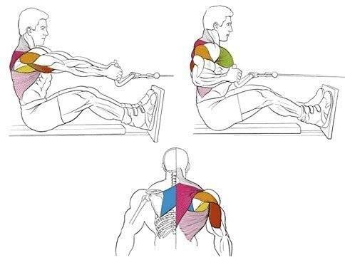 Хочу уделить особое внимание популярному заблуждению, что блочная тяга сидя является аналогом гребли. Это два отдельных упражнения с разными целями, потому если вы хотите имитировать гребные движения в блочном тренажере, то это будет огромной ошибкой