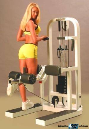 - Последнее, что надо будет сделать – это выставить вес, в зависимости от вашего уровня подготовки. Выбирайте вес так, чтобы с ним вы смогли сделать 3–4 подхода по 15–20 раз. Большое отягощение в этом упражнении не используется.