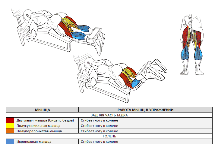 Это упражнения является изолирующим, выполняется в специальном тренажере и направлено на прокачку одной мышцы, а именно двуглавой мышцы бедра (бицепса бедра).