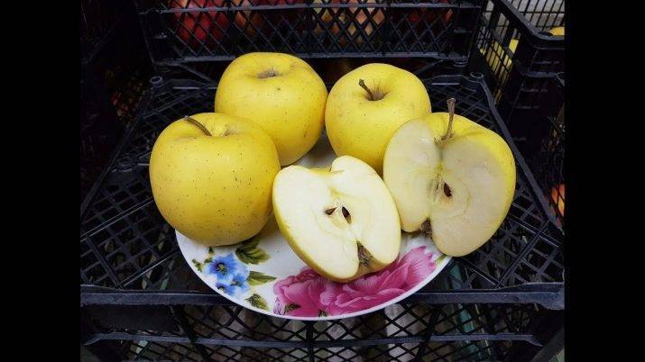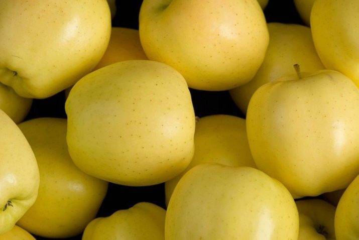 Кожура у них довольно толстая. На ранних стадиях созревания плоды имеют желтовато-зеленый цвет, слабо отличающийся от прочих сортов. Но полностью созревшие яблоки приобретают чисто желтый окрас, за который и получили свое название.