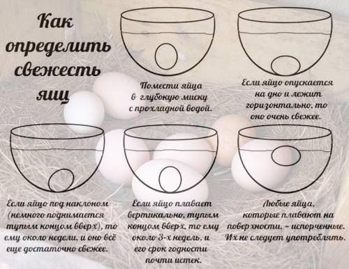 - опустить в воду — свежие всплывают, несвежие тонут;