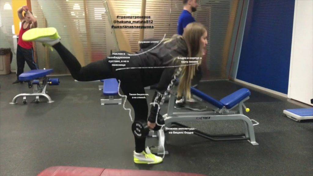 Первые разы выполнения (2-4 тренировки) румынской тяги на одной ноге нужно делать вообще без веса, чтобы научиться правильно держать равновесие.