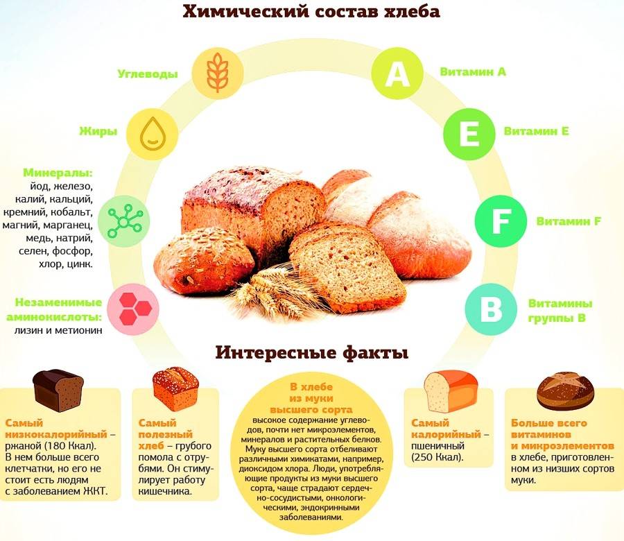 Получается, что на калорийность хлеба на 100 грамм приходится 275 ккал. Один кусочек хлеба будет содержать около 100 ккал, но его употребление скажется на фигуре хуже. Все объясняется дрожжами и составом используемой для выпечки муки. Если есть желание полакомиться белым пшеничным хлебом, лучше отдать предпочтение гренкам или сухарям.