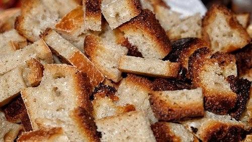 Сухари очень часто используются в качестве дополнения к горячим жидким блюдам и салатам. Рекомендации по их включению в рацион здорового питания связаны с содержанием большого количества питательных веществ и витаминов (магния, фосфора, железа, калия, натрия и т.д.), а также низким уровнем клейковины, что способствует нормализации функций пищеварительного тракта.